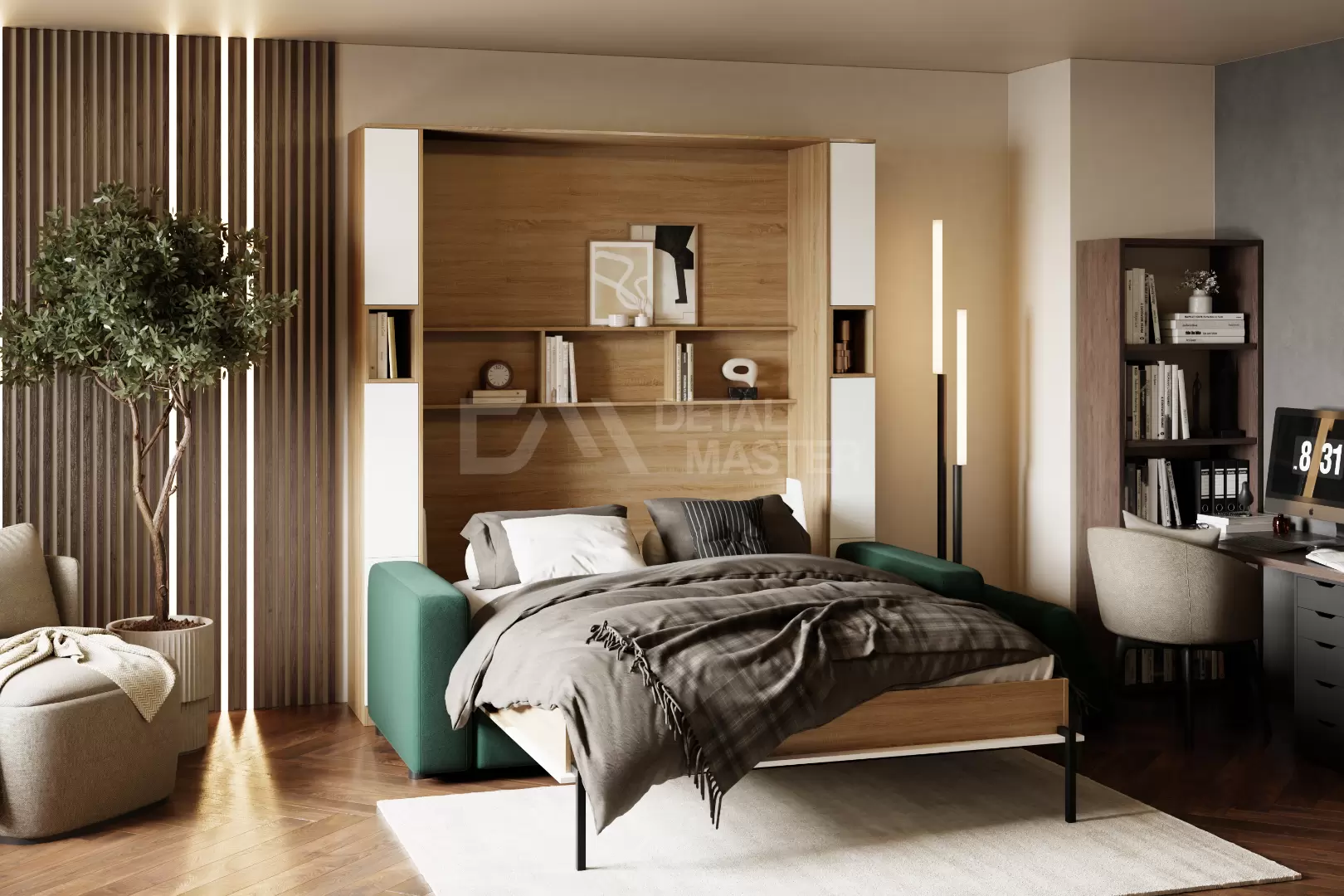• Корпус и фасад шкаф-кровати, выполненный из ЛДСП;